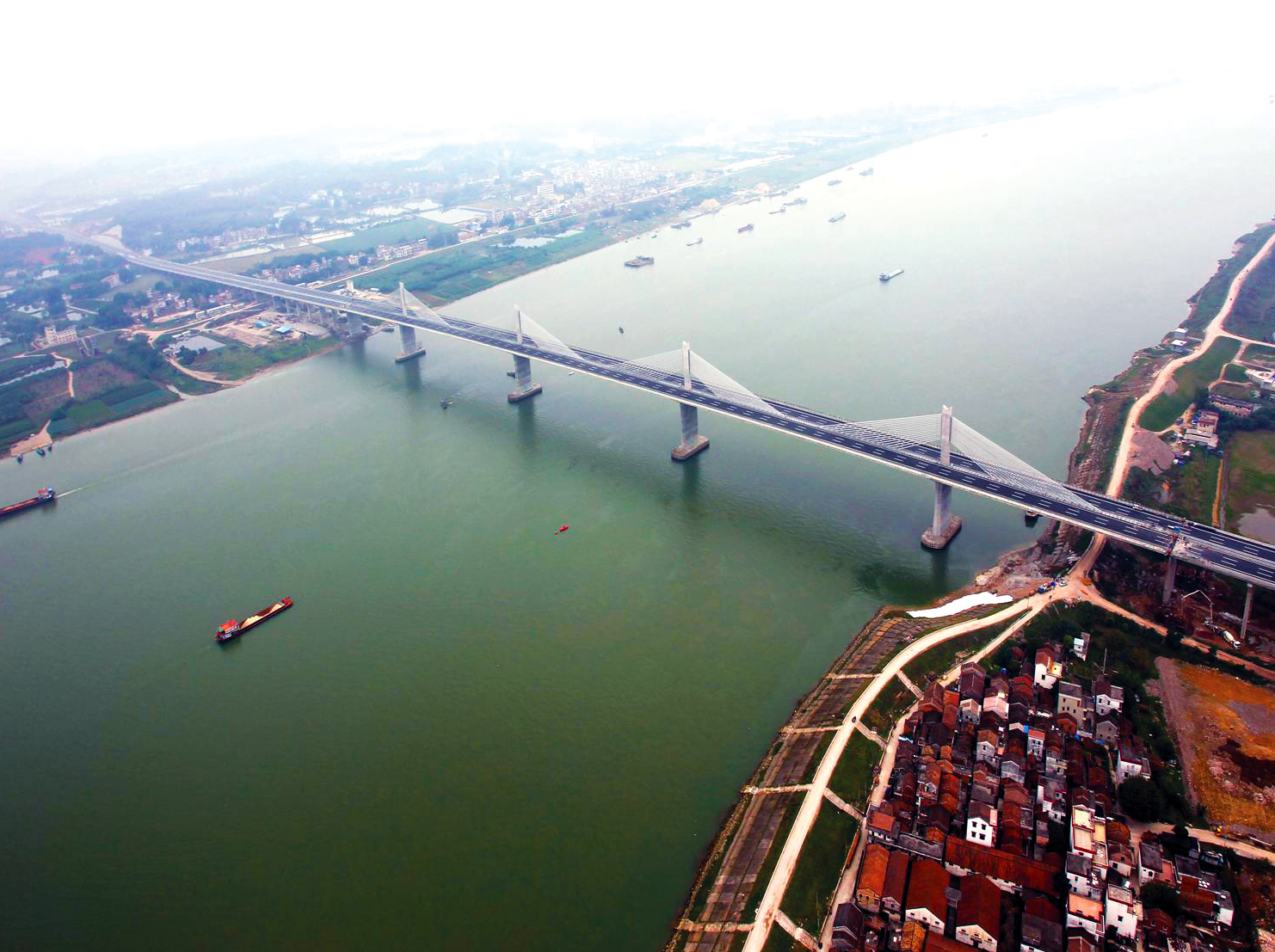 2012年建成通車,全長2692米,采用墩、塔、梁固結體系,多塔矮塔斜拉橋。