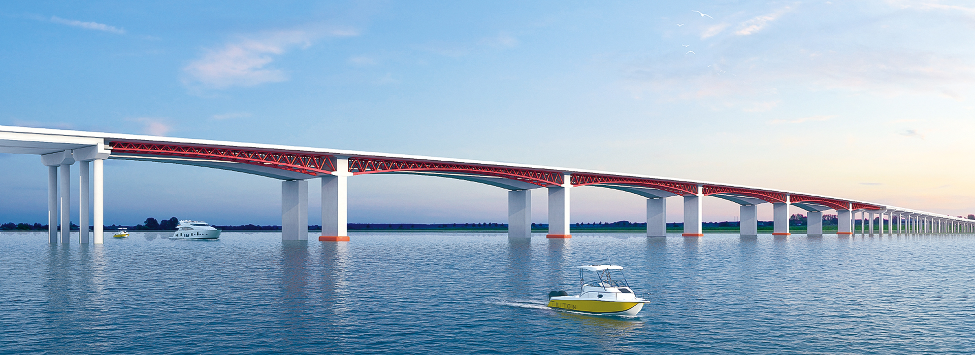 肇慶大橋,是西江最大的橋。工程路線全長7.8km,橋梁長2.5km,總投資4.58億元,施工工期兩年半。大橋通航孔為雄偉的四孔136m預應力單箱連續梁(箱寬22m為國內之最)。