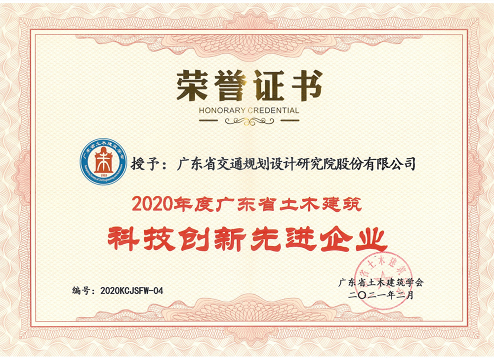 近日,公司被廣東省土木建筑學(xué)會授予“2020年度廣東省土木建筑科技創(chuàng)新先進企業(yè)”榮譽稱號;公司副總工程師梁志勇和萬志勇、巖土勘察院院長張金平、第四設(shè)計院總工程師徐德志4人被評為“2020年度廣東省土木建筑優(yōu)秀科技工作者”。特此報喜。