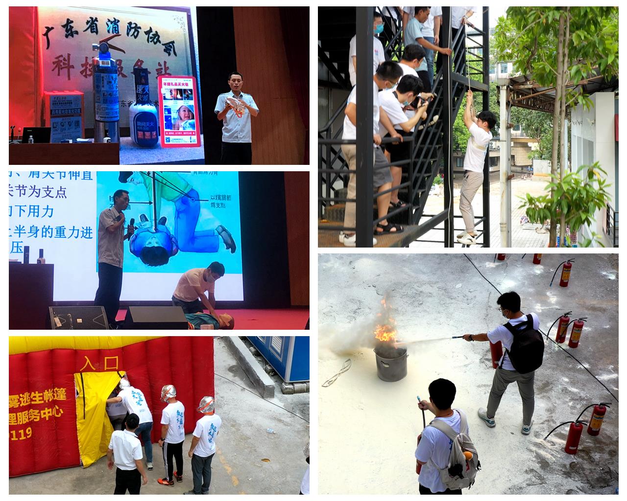 為提高員工的安全意識,公司安排了消防教育中心教官講授消防安全知識,并組織開展了滅火器使用、濃煙帳篷逃生、高空緩降逃生、模擬心肺復(fù)蘇等實操演練,以理論結(jié)合實踐,豐富了新員工的應(yīng)急處理知識,提高了面對危急情況的應(yīng)變能力。