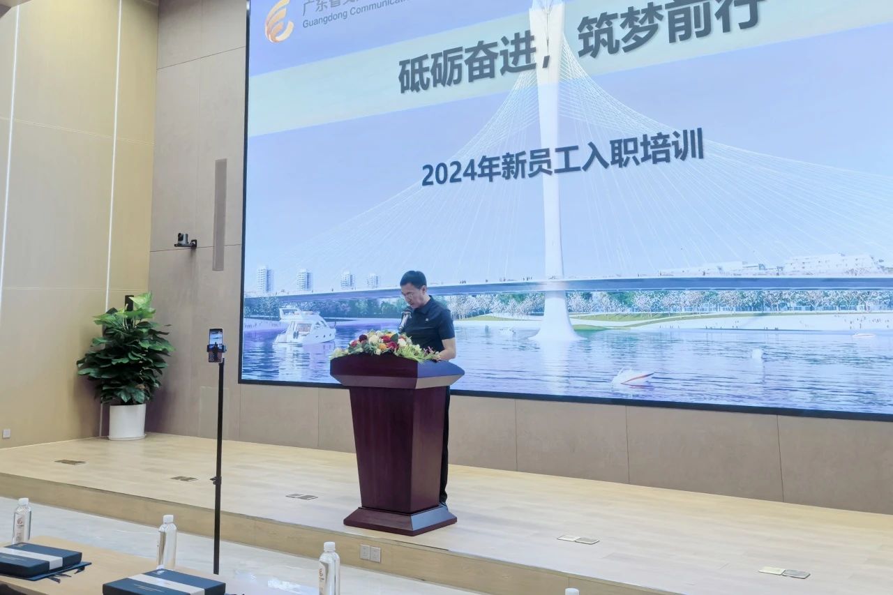 公司副總經理陳賢文介紹了公司從創立至今的每一個重要里程碑,詳盡解讀了公司的戰略規劃,闡釋了“12368”發展戰略的內涵,講述了公司歷經歲月積淀所形成的“先鋒”文化體系,闡述了由一代代廣東交通院人不懈奮斗凝聚而成的“至誠至善,求實創新”核心價值觀以及“一路領先”的企業精神,號召新員工將其內化于心、踐行于職。陳賢文副總經理還跟大家分享了個人職業發展的寶貴經驗,鼓勵新員工制定清晰的職業發展目標,采取積極的行動計劃,在實踐中不斷學習和成長,以更加飽滿的熱情和堅定的步伐,逐夢前行。