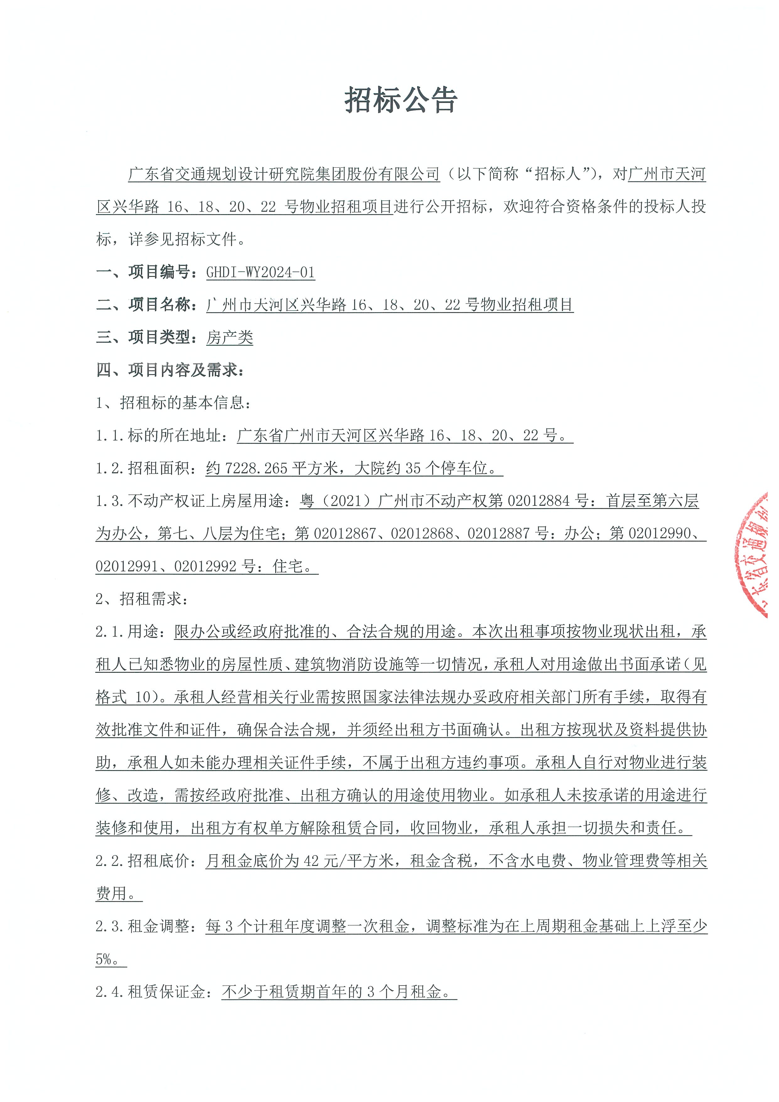 廣州市天河區興華路16、18、20、22號物業招租項目招標公告