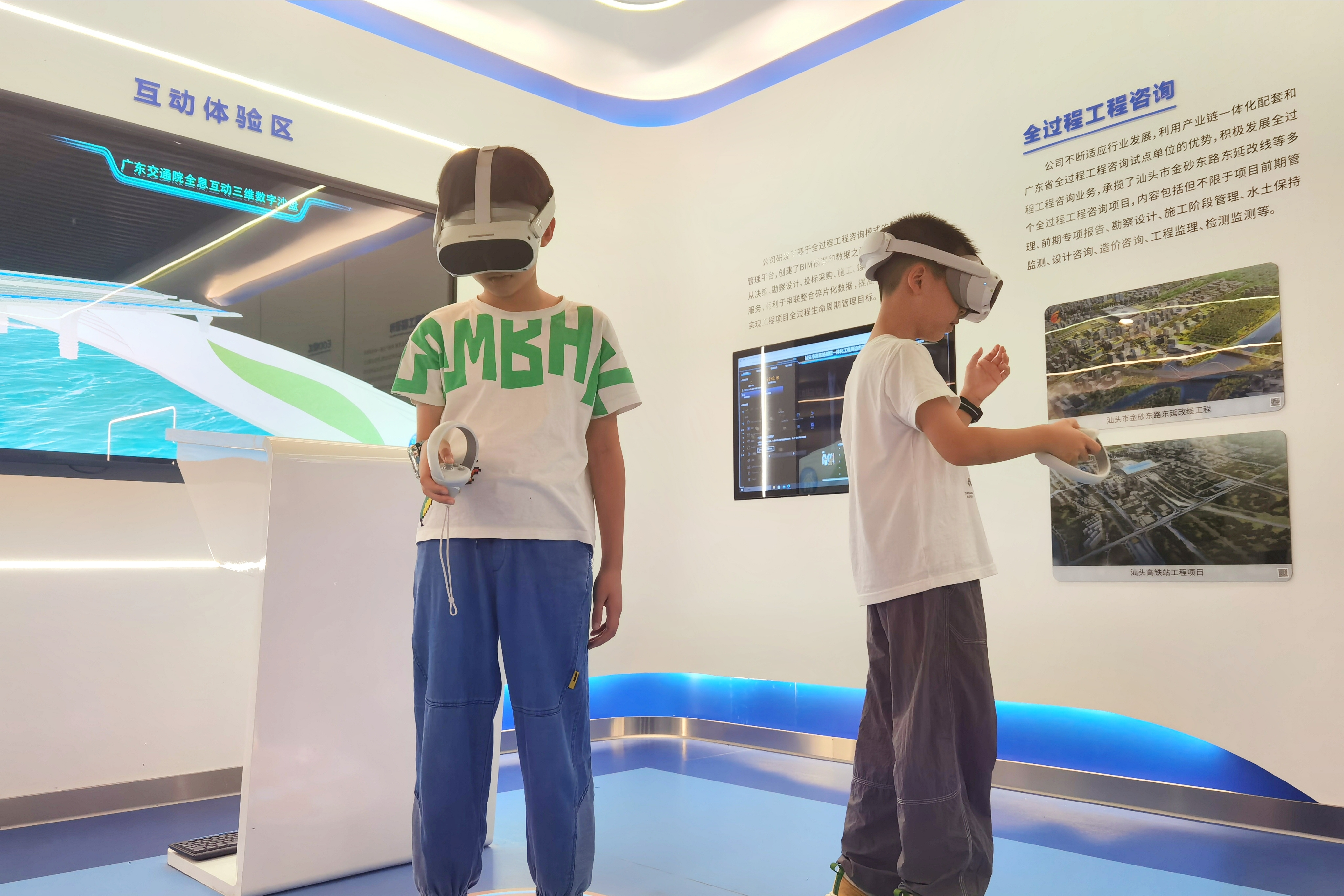 活動(dòng)伊始,家長(zhǎng)與孩子率先走進(jìn)公司展廳。在講解員的生動(dòng)講述中,大家系統(tǒng)了解了公司的發(fā)展歷程、核心業(yè)務(wù)領(lǐng)域、前沿技術(shù)探索和企業(yè)文化內(nèi)核。展廳內(nèi)的互動(dòng)屏幕與智能設(shè)備直觀演示了公司自主研發(fā)的交通技術(shù)在生活中的應(yīng)用。孩子們尤其對(duì)VR體驗(yàn)區(qū)充滿好奇,紛紛戴上眼鏡開(kāi)啟沉浸式之旅,在虛擬世界中“穿梭”于未來(lái)交通場(chǎng)景,親手“觸摸”科技賦能生活的無(wú)限可能,興奮的歡呼聲此起彼伏。