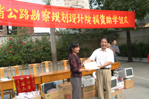 2005年10月17日,是國(guó)際消除貧困日,在這個(gè)特殊的日子里,院董事長(zhǎng)、黨委書記石國(guó)彬同志帶領(lǐng)由本院職工組成的扶貧助學(xué)慰問團(tuán)一行25人,來到清遠(yuǎn)連南瑤族自治縣三排鎮(zhèn)大埂小學(xué),進(jìn)行“回報(bào)社會(huì),奉獻(xiàn)愛心”捐資助學(xué)活動(dòng)。本次募捐是結(jié)合保持共產(chǎn)黨員先進(jìn)性教育活動(dòng)開展的,由院工會(huì)組織發(fā)起,所有捐款全部采用職工自愿的形式。在捐贈(zèng)儀式上,石董事長(zhǎng)代表全院職工將26980元現(xiàn)金當(dāng)場(chǎng)捐獻(xiàn)給了大埂小學(xué),(其中15000元用于成立“廣東省公路勘察規(guī)劃設(shè)計(jì)院扶貧助學(xué)基金”、其余款項(xiàng)用于購(gòu)置教學(xué)設(shè)備),此項(xiàng)義舉受到了該縣縣委、縣教育主管部門領(lǐng)導(dǎo)的充分肯定和高度贊揚(yáng)。廣大同學(xué)也紛紛表示一定珍惜學(xué)習(xí)機(jī)會(huì),不辜負(fù)社會(huì)各界的關(guān)愛和期望,長(zhǎng)大成才后報(bào)效祖國(guó)……