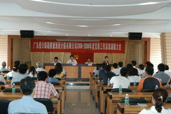 6月26日下午,公司在九樓會議室召開2008-2009年度黨委工作總結表彰大會。會上,李江山書記作了《凝心聚氣、真抓實干,以改革創新精神推動公司黨務工作全面發展》的工作報告。大會表彰了一批先進黨支部、優秀黨務工作者和優秀共產黨員。會議由李琴總經理助理主持,黨委委員陳春霖、田可耕出席會議。