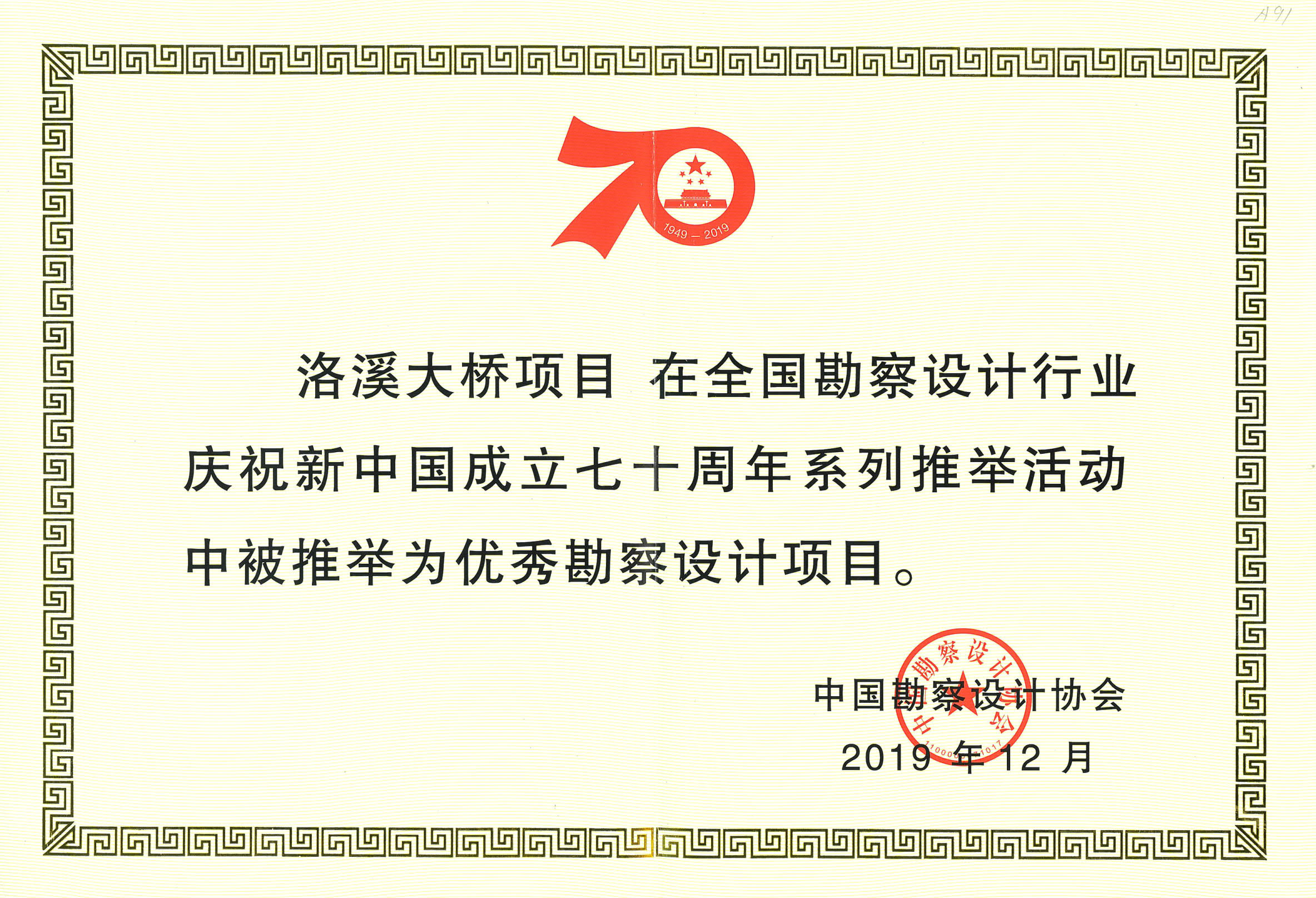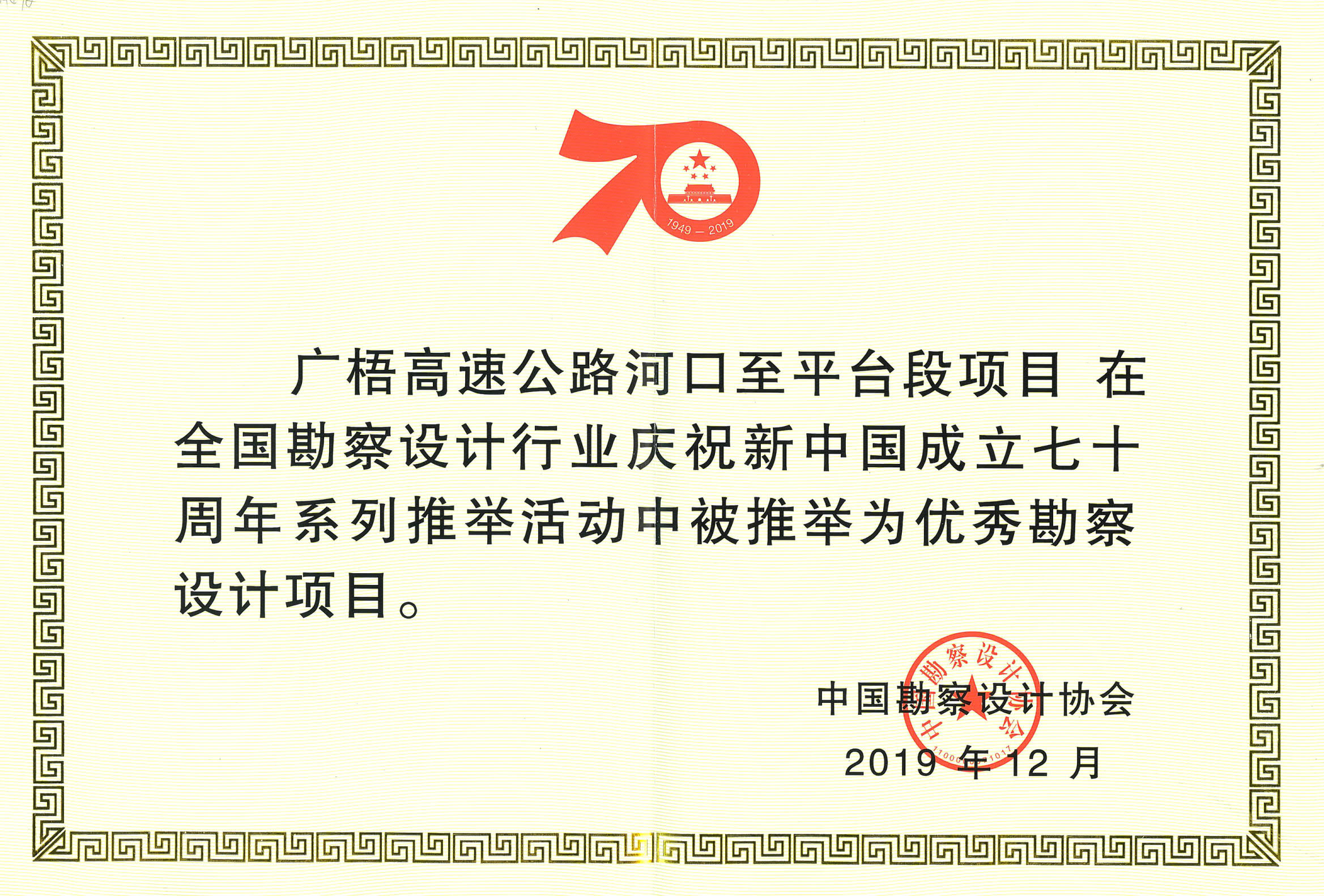 會上揭曉了“全國勘察設計行業慶祝新中國成立70周年系列推舉活動”評選結果。我公司喜獲“優秀勘察設計企業”榮譽稱號;我公司負責設計的“洛溪大橋”與“廣梧高速公路河口至平臺段”工程被評選為“優秀勘察設計項目”。黃湛軍總經理代表公司領獎并接受表彰。