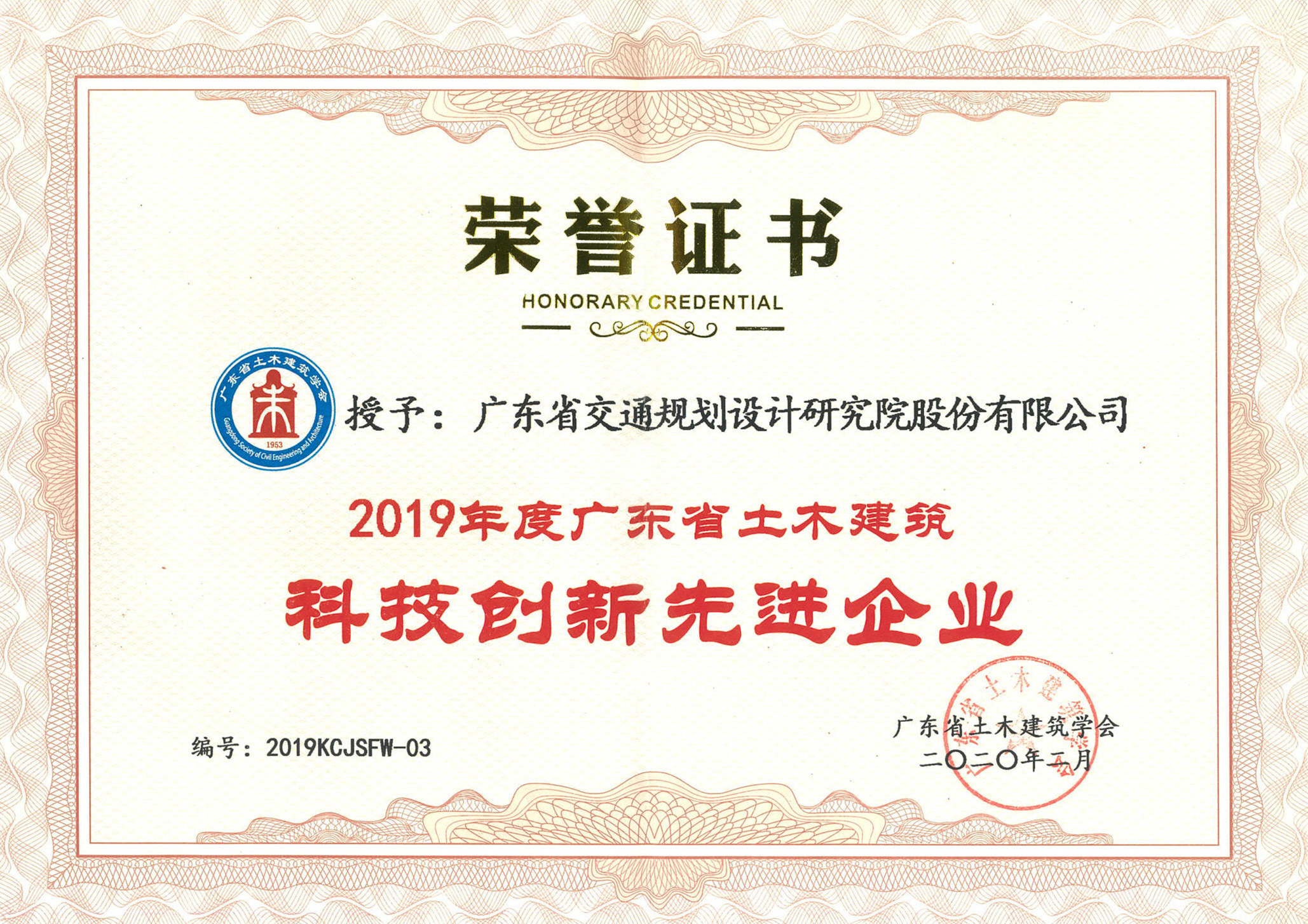 近日,公司被廣東省土木建筑學(xué)會授予“2019年度廣東省土木建筑科技創(chuàng)新先進企業(yè)”榮譽稱號,特此報喜。